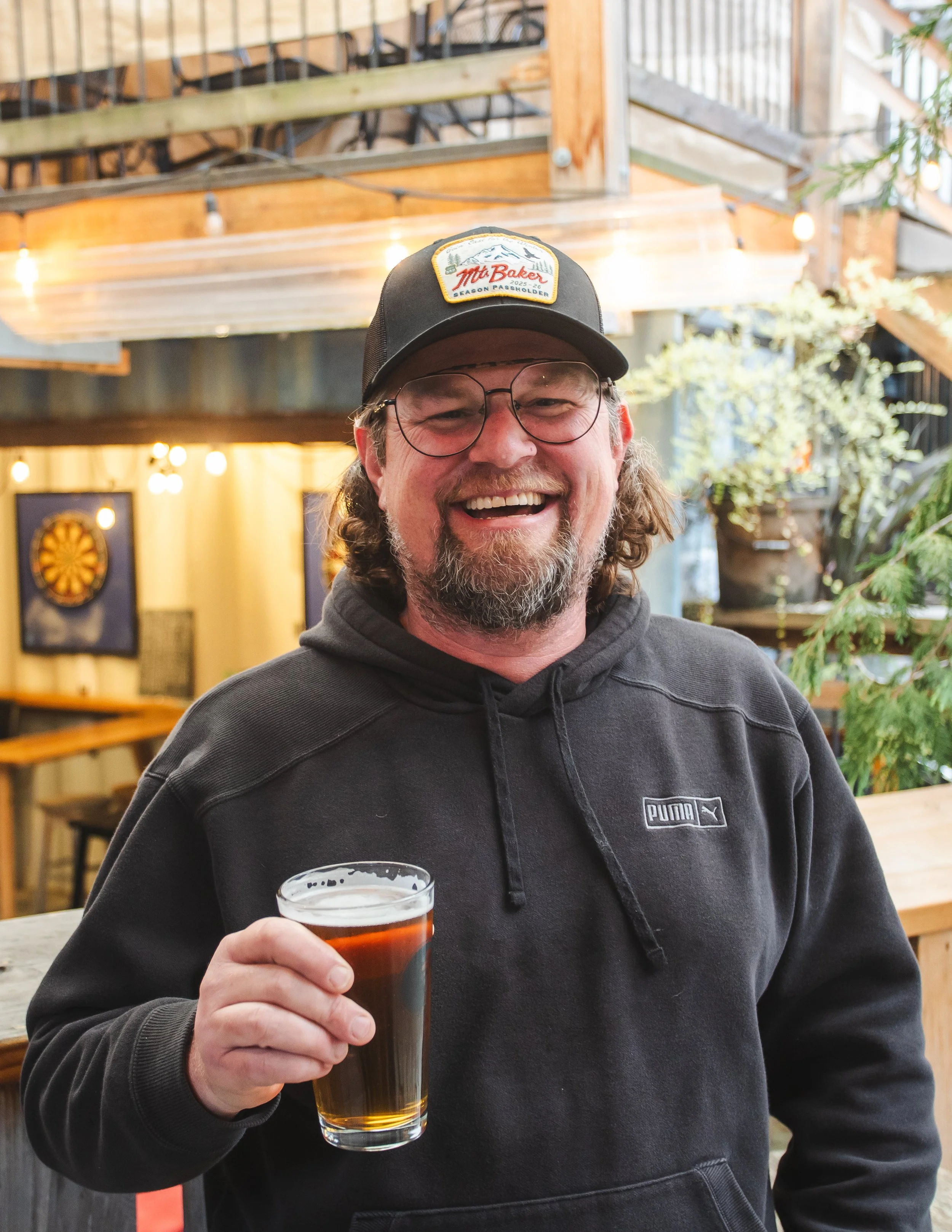 She hails from the wild shores of Lake Superior in Grand Marais, Michigan, where riding a snowmobile to school and hunting for agates before breakfast was totally normal. She studied photography and journalism in Chicago, finished college in Colorado, then peaced out to Bellingham because it’s got mountains and water (aka: the dream). When she’s not beertending at Stones Throw or Mt. Baker’s Raven Hut, she’s probably deep in the woods looking for mushrooms (Chanterelle Queen of the PNW, thank you very much), playing disc golf, or asking if she can pet your dog. She loves seafood, dad jokes, and all things goofy, and she’s got her shellfish license in case you're looking for a crab boat co-captain. Come say hi—she’ll be the one laughing, snacking on cheese, and quoting “Hey can I pet that dawwwg?”