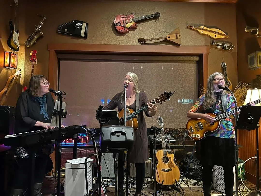 Three amazing women with stellar 3-part harmonies performing an eclectic mix of covers and original tunes on guitar, bass and keyboard.