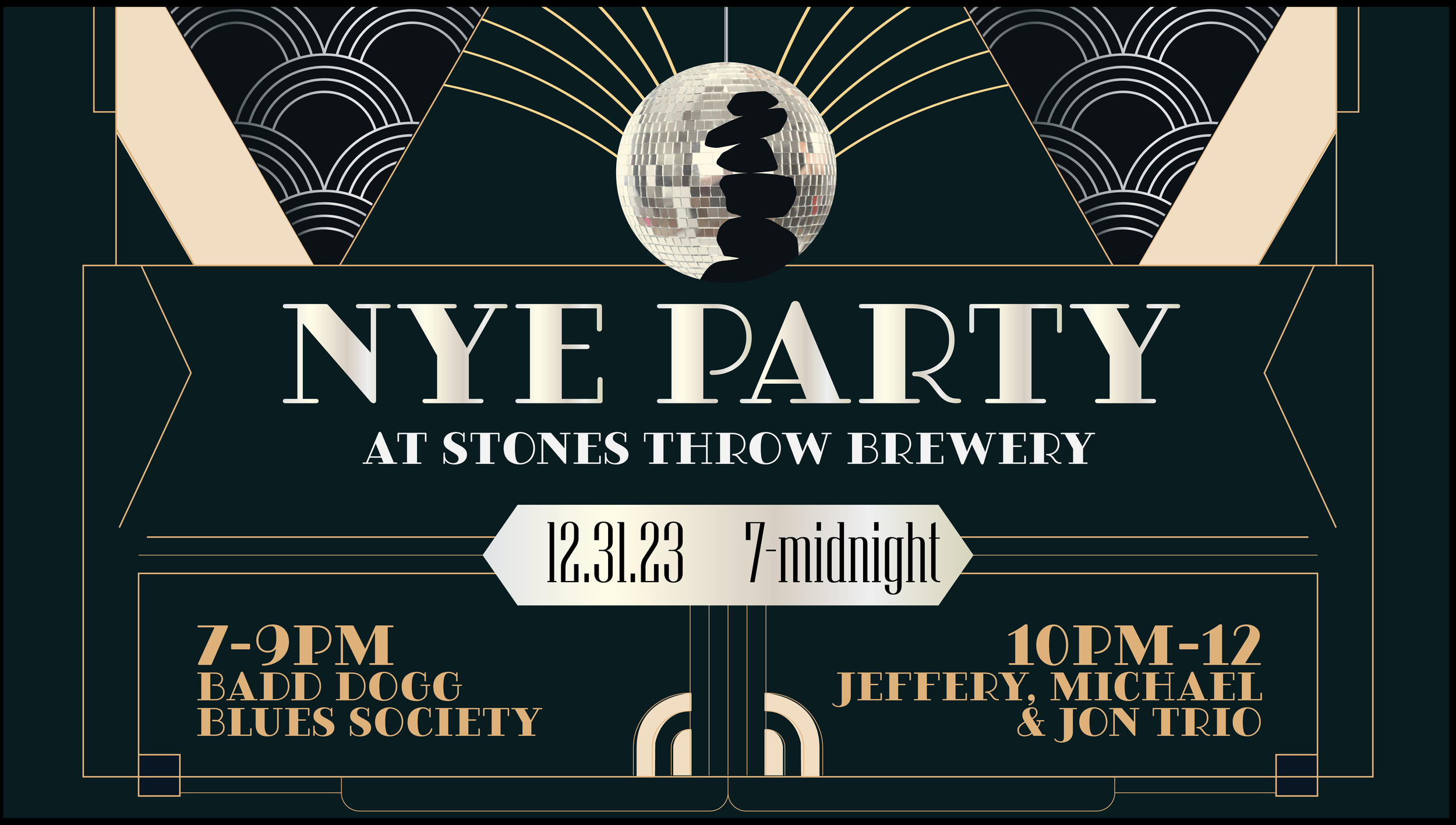 Badd Dog Blues and the Jeffrey, Michael, and Jon Trio will be playing tunes and your favorite brews and champagne will be flowing all night long.